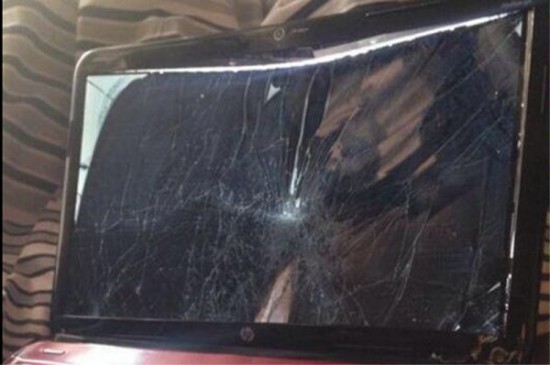 Denzel随文附上一张手提电脑屏幕破坏的照片。(香港《明报》)