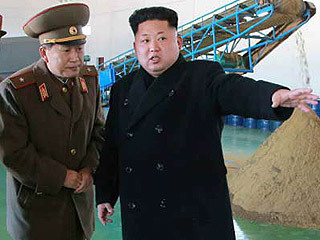 金正恩日前视察鱼饲料厂,笑称心情大好。(资料图片)