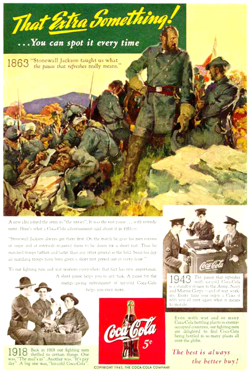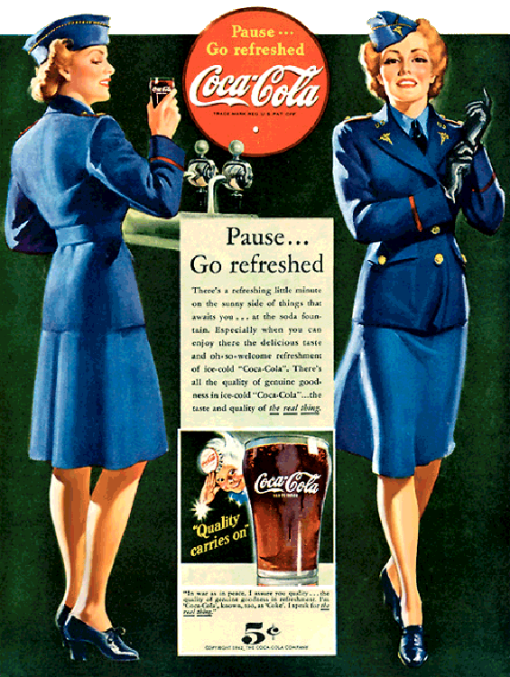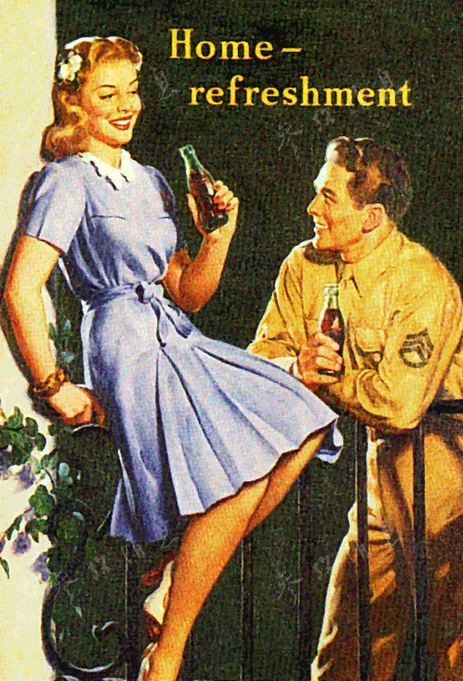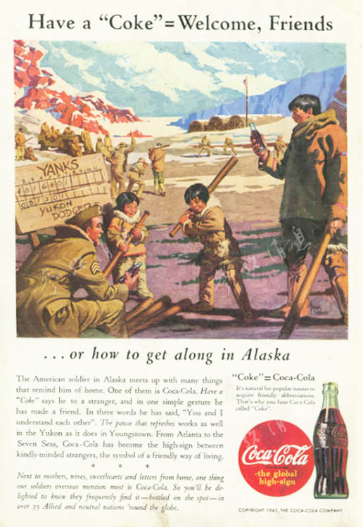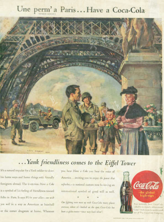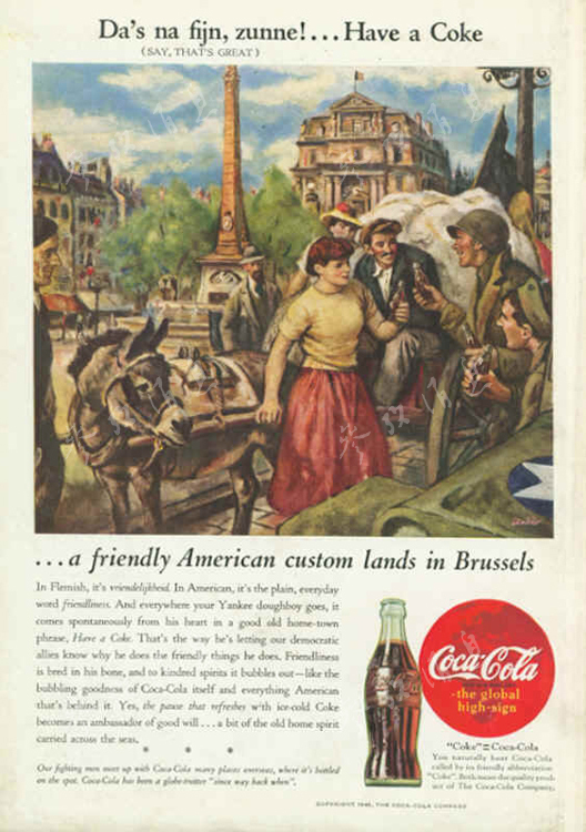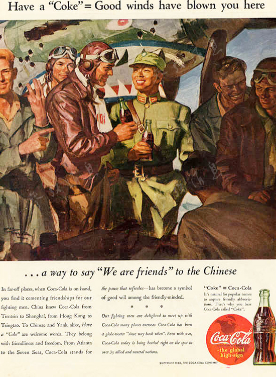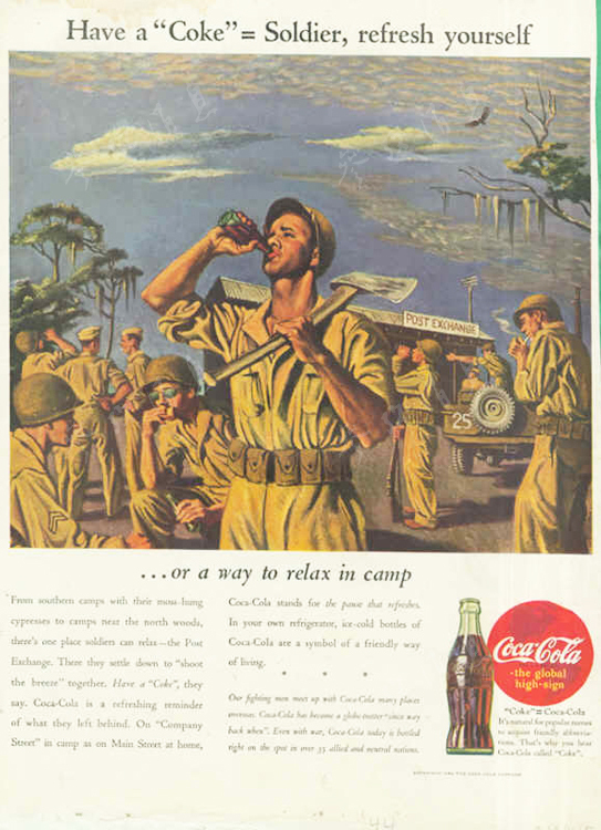 1944年,战争期间,可口可乐广告也搭上战争的顺风车。
