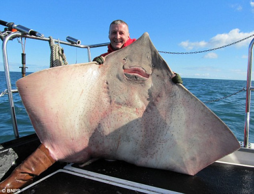 【延伸阅读】 英国男子捕获188斤巨型鳐鱼
