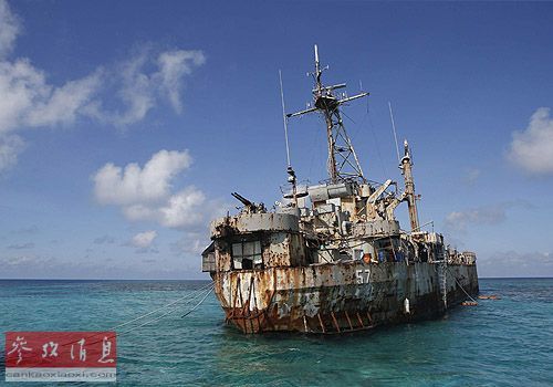 资料图:菲律宾把坐滩仁爱礁的废旧两栖登陆舰“谢拉·马德雷”号作为在南海对抗中国的“桥头堡”。