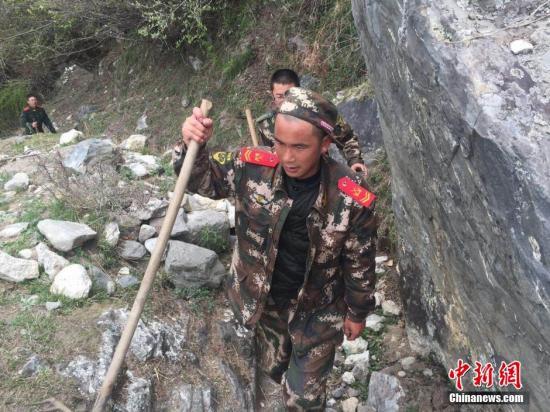 4月26日 西藏公安边防总队机动支队官兵为吉隆镇萨勒乡的村民转移财产。张钰 摄