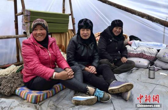 4月27日,西藏吉隆重灾区安置点内临时帐篷内的受灾民众情绪稳定 。中新社发 李林 摄