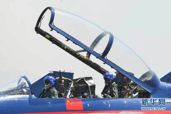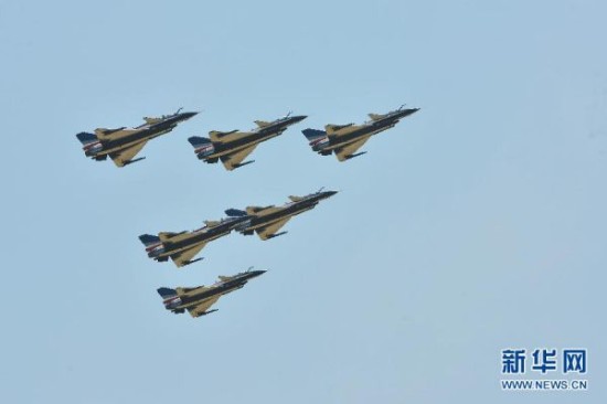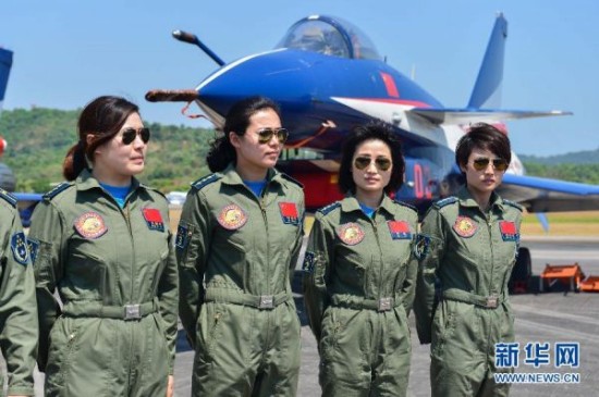 来自中国人民解放军空军八一飞行表演队的歼击机女飞行员,驾驶着中国歼-10战机,在空中翩翩起舞。她们精彩的飞行表演,成为马来西亚兰卡威国际海事与航空展上一道亮丽的风景线。这是中国首批歼击机女飞行员首次进行海外飞行表演。新华社发(张纹综摄)