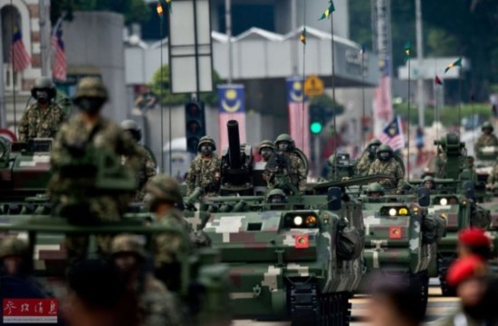 资料图片:2014年8月31日,马来西亚国庆阅兵式上的陆军装甲车方队。