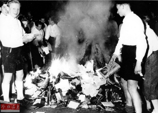 1938年4月30日,奥地利纳粹青年团的成员在进行焚书。公开焚书是在纳粹德国境内发生的统一行动。