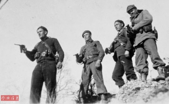 图为国际纵队中的加拿大志愿者,他们个个手持“盒子炮”。1936年,有1700多名加拿大志愿者参加了对抗佛朗哥军队的战斗,其中就包括伟大的国际主义战士白求恩。
