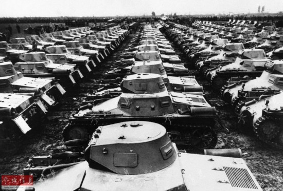 1935年10月4日,在比克堡全国丰收节上,德军当着上百万居民展现它的实力。在分列式开始之前大量坦克聚集在一起。希特勒在1933年掌权之后,完全无视凡尔赛条约的限制,德国迅速地走上重新武装之路。