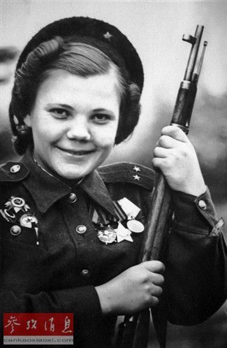 沙妮娜只是二战苏军众多女狙击手的优秀代表之一,图为苏军二战女狙击手头号王牌柳德米拉 .帕夫里琴科,狙杀记录为309人。