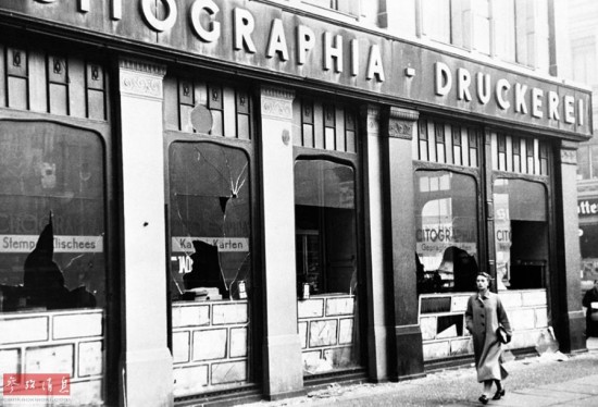 1938年11月8日,在柏林发生了步调一致的反犹太示威行动,用锤子打碎犹太人商店橱窗玻璃,将犹太人驱赶进集中营,后被称为“水晶之夜”。当党卫军和市民打碎橱窗玻璃和驱赶犹太人时,纳粹当局采取视而不见的态度,街道上到处是玻璃碎片。这次暴行中,有九十一名犹太人被杀,三万余名犹太人被赶进集中营。