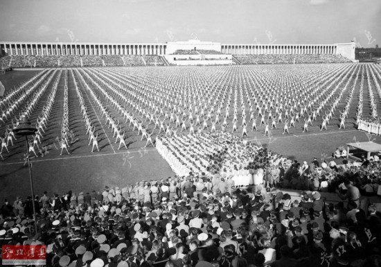 1938年9月8日,德国纽伦堡召开的“社团日”上举行大型团体操表演。希特勒出席并观看在齐柏林体育场举行的大型活动。