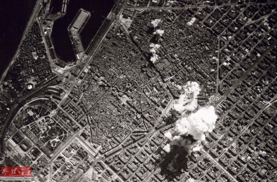 1938年,佛朗哥的空军轰炸巴塞罗那。在西班牙内战期间出现了最早的对平民目标进行狂轰滥炸的残暴行为,随后发展成新的恐怖轰炸的战争方式。