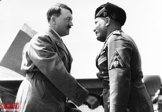 1934年6月14日,在威尼斯机场,阿道夫·希特勒与贝尼托·墨索里尼握手致意。墨索里尼为希特勒举行了盛大的欢迎仪式。但是,对他们以后进行谈判的详细内容只有很少的新闻报道。