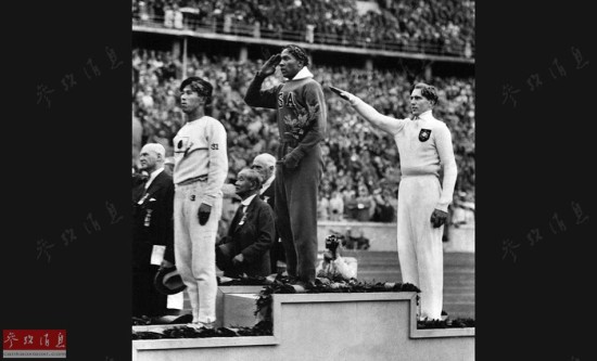 1936年柏林奥林匹克夏季运动会,跳远比赛的第一名是美国运动员杰西·欧文斯,第二名德国运动员卢兹·朗,第三名日本运动员田岛直人。颁奖升旗仪式上,欧文斯敬美式军礼,卢兹·朗敬纳粹礼。欧文斯在田径赛中获得四项冠军,100米和200米短跑、跳远和4X100米接力。他是第一位在一届奥运会上获得四块金牌的运动员。