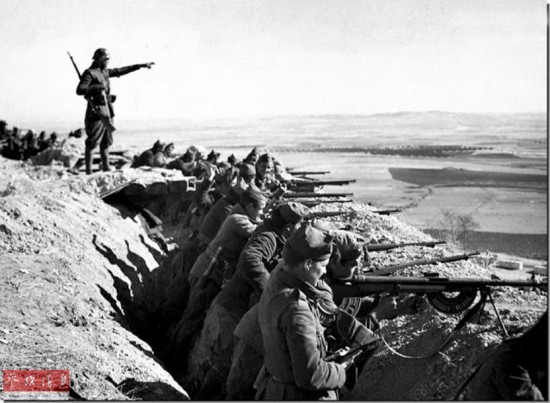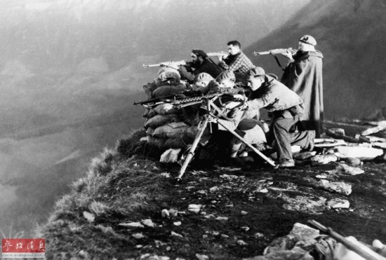 1936年12月30日,一个富有经验法西斯叛军的机枪班在西班牙北部韦斯卡前线崎岖的山地上占据制高点。