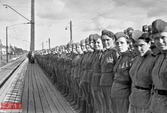 ?图为1943年,准备开赴前线的苏军女狙击手部队。