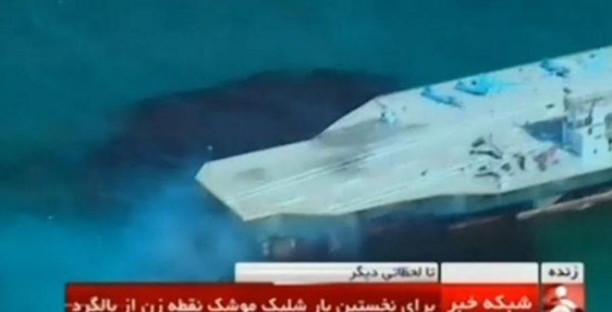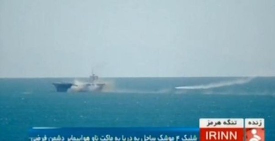 法尔斯通讯社当时报道说:“伊斯兰革命卫队在波斯湾和霍尔木兹海峡举行军事演习时用导弹摧毁了一艘航母模型。”
