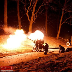 资料图片:加里宁格勒的俄罗斯炮兵部队开炮庆祝“祖国保卫者”日。