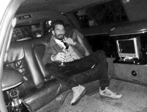 帕拉左托在豪车里喝香槟