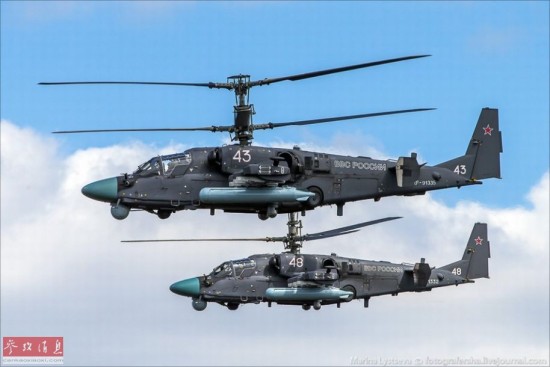 受阅编队中的卡-52武装直升机。