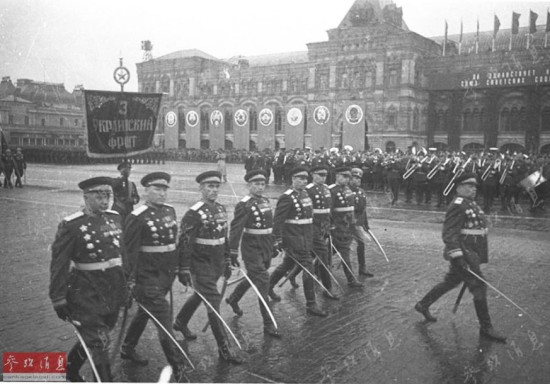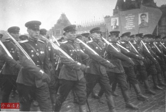 手持军刀的苏军受阅官兵。