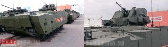 从这张图中,可以对比T-15步战车与T-14坦克的差异。