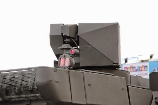 从车体后方拍摄的T-14炮塔顶部遥控武器站。