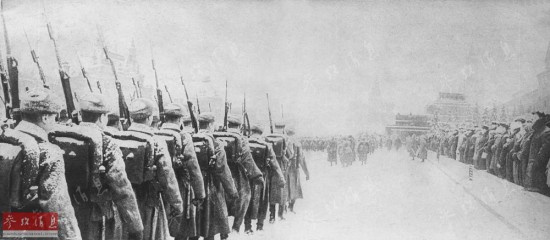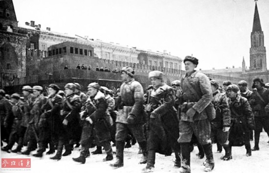 1941年11月初,正值莫斯科会战的关键时期。180多万德军,1700多辆坦克,1390多架飞机,14000多门大炮,业已兵临莫斯科城下。德军先锋机械化部队最近距莫斯科仅有25公里了。为了鼓舞苏联士兵的士气,斯大林等苏联高层毅然决定:传统的十月革命节阅兵照常举行。全副武装的苏联红军部队,迈着雄健的步伐从红场列宁墓前走过,接受了最高统帅们的检阅,随后就从红场直接开赴前线。莫斯科盛大阅兵仪式成为世界战争史上的一个奇迹,一个苏联军民创造的“冬天神话”。这组图集将为大家重现这一传奇。