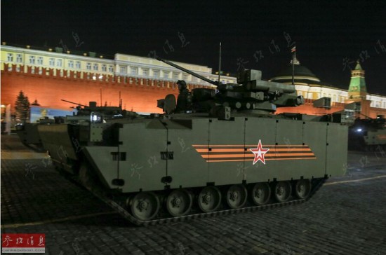 此次亮相的新型装备还包括图中的“库尔干人25”城市战步兵战车,注意其搭载的炮塔,是不是很眼熟呢?