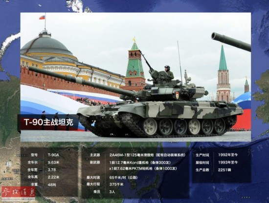 下面这些基本就是大家耳熟能详的装备了,T-90A作为俄军现役主战装备,是历届阅兵式上的常客。