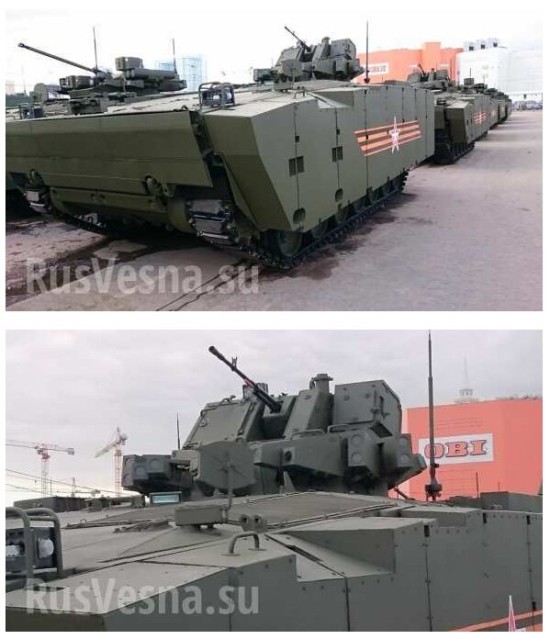 ?在俄官方未公布具体数据前,这里只能进行一些猜测。注意T-15采用的这种新型模块化弹炮合一炮塔,我们在后面的装备中还能见到。