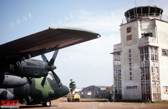 这场富有传奇色彩的突袭营救行动无疑应被载入史册。图为1994年,一架C-130运输机停放在恩德培塔台旁,1976年“霹雳行动”留下的弹孔至今清晰可见。