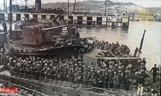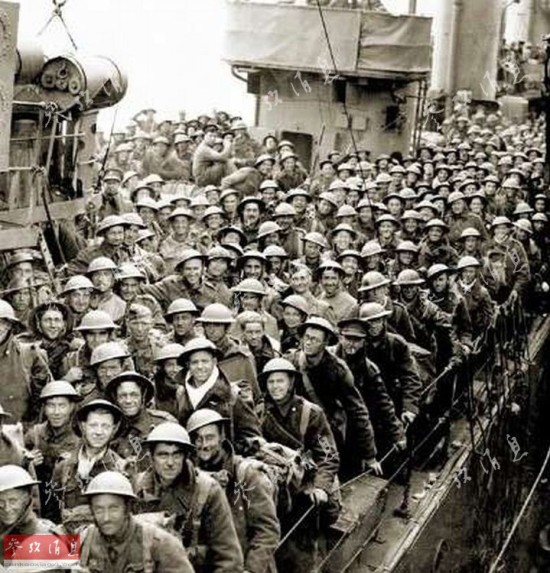 图为成功撤离的英法联军士兵即将在英国多佛靠岸。