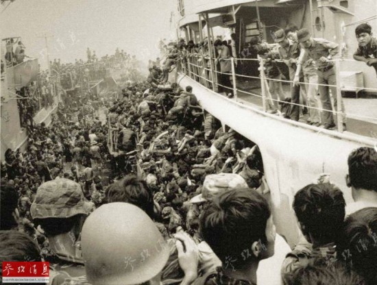 ?图为“常风行动”期间,登船溃逃的南越军人。