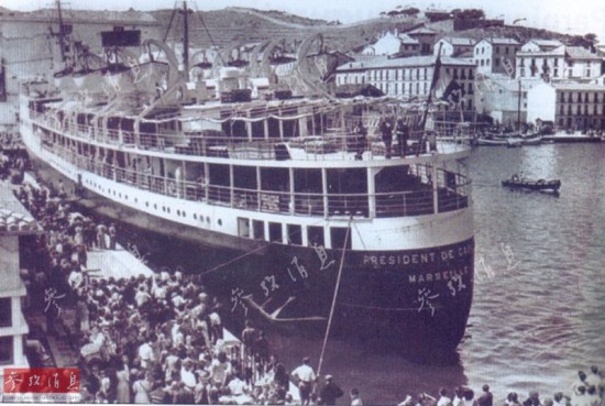 ?图为法国驻阿尔及利亚侨民安全抵达法国港口。