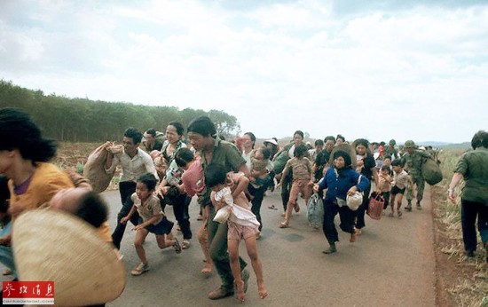图为“常风行动”期间,溃逃中的南越军人及其家属奔向前来接应的直升机。