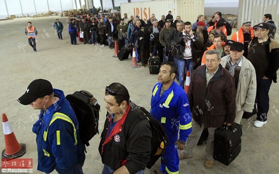 图为2011年1月,排队准备搭乘“坎伯兰”号战舰从班加西撤离的英国侨民。