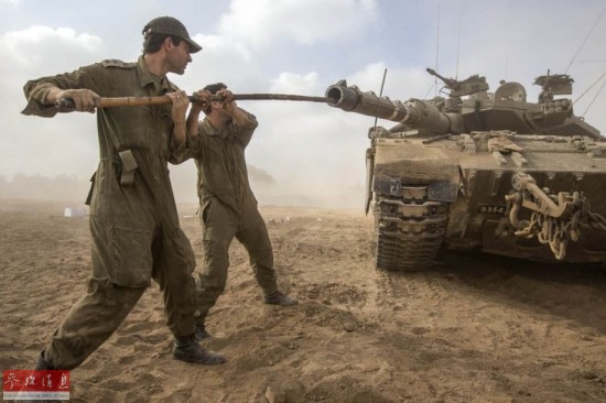 7月24日,在以色列与巴勒斯坦边境,以色列国防军士兵准备对加沙地带发起攻击。