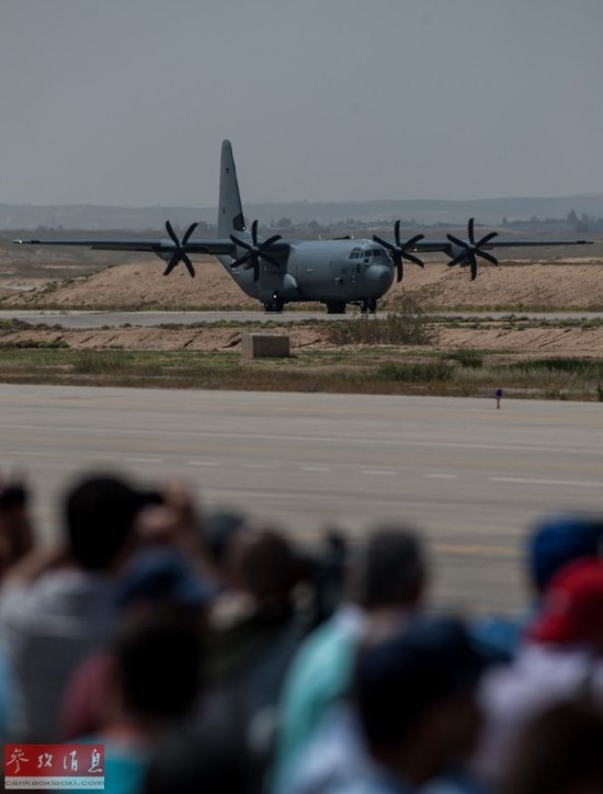 4月9日,C-130J“超级大力神”运输机飞抵以色列南部城市贝尔谢巴附近的内瓦提姆空军基地。当日,以色列空军在内瓦提姆空军基地举行仪式,欢迎C-130J“超级大力神”运输机正式加入以空军。此次降落在该基地的C-130J运输机编号为611,由美国起飞,经历了12个小时的飞行。这也是以色列向洛克希德-马丁公司订购的三架C-130J中的第一架。这款机型在列装以色列空军时被命名为“大力士”,其运输系统被改装,以便安装以色列自主研发的其它设备。新华社记者李睿摄