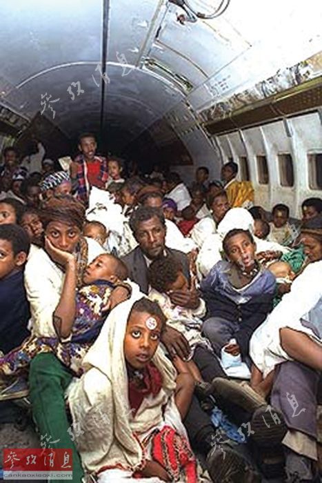 图为乘坐以军运输机飞往以色列的埃塞难民。