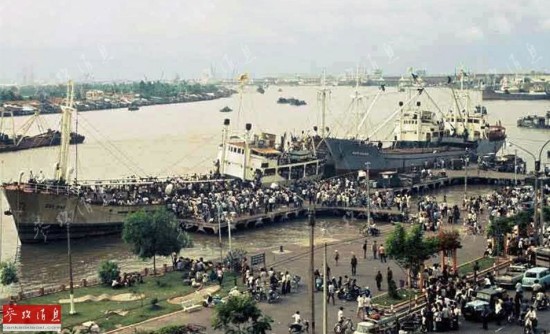 ?图为“常风行动”期间,大批南越难民试图挤上轮船逃亡。
