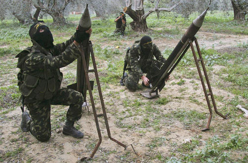 资料图片:哈马斯武装分子发射自制火箭弹。(图片来源于网络)