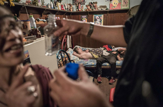 她们每天站街工作,但是仅仅获得微薄的收入。变性女人互相称对方为Marica,这是对同性恋的一种冒犯语。图为晚上站街的娜塔莉亚,但是她不喜欢这个时间工作,她认为这个时段很危险。但是她不得不出来赚钱,有时她一天要在外面站近20个小时,她依靠服用一些药物来让自己感觉起来不那么冷。