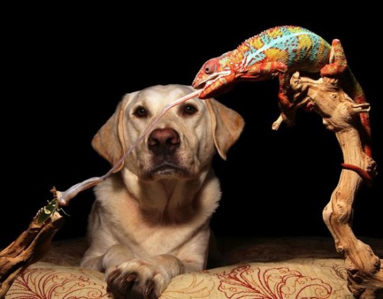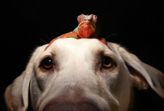 【延伸阅读】宠物狗与变色龙同吃同住其乐融融