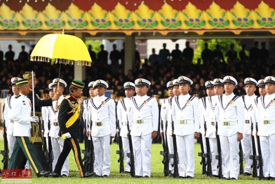8月14日,在文莱斯里巴加湾,文莱苏丹哈桑纳尔·博尔基亚(前)出席传统阅兵仪式。从14日开始,文莱从城市到乡村为苏丹哈桑纳尔·博尔基亚68华诞举办各式各样的生日庆祝活动。14日当天,文莱还举行苏丹华诞传统阅兵和苏丹努洛伊曼王宫的册封仪式。由于今年苏丹陛下68岁华诞正值穆斯林斋戒月期间,当局决定将华诞庆典系列活动延至8月举行。新华社发(杰弗里·黄摄)