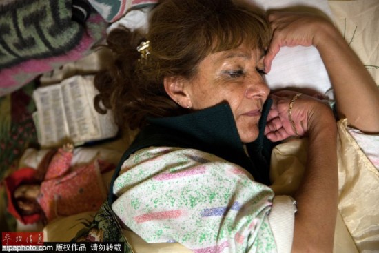 在墨西哥墨西哥城,Casa Xochiquetzal老年性工作者养老院内,Laeticia正在睡觉。