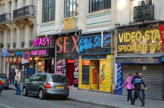 资料图:在法国巴黎蒙马特街区,随处可见霓虹灯与情色服务的招牌,还有许多成人用品商店。(图片来源于网络)