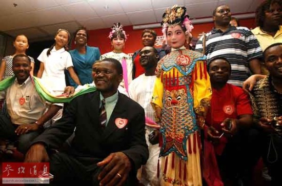 资料图片:2010年7月18日,来自非洲非政府组织代表团的成员与参加慈善活动的中国小演员合影留念。新华社记者 陈飞 摄
