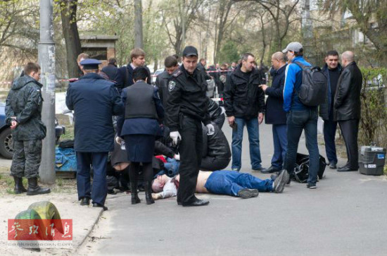 ——普京批评西方对乌克兰亲俄记者遇害事件装聋作哑。近日基辅接连发生亲俄人士被暗杀事件,先是流亡总统亚努科维奇所在政党的一名议员被杀,然后是一位知名的亲俄派记者光天化日之下遇害。普京认为这些都是“政治谋杀”,而乌克兰官员则怀疑是俄方策划了这些暗杀事件,意在抹黑乌政府。图为乌记者遇害现场。