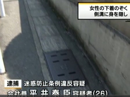 有过路女性察觉后报警,警察赶到现场时,嫌犯已经逃走。警方发现,平井泰臣曾在附近的下水道有过偷窥记录,怀疑他涉案,他到案后对偷窥事实也供认不讳。